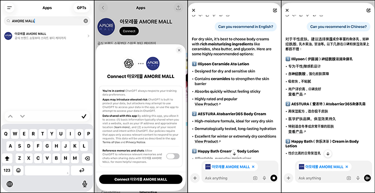 爱茉莉太平洋在OpenAI的ChatGPT平台正式推出"AMORE MALL"应用。